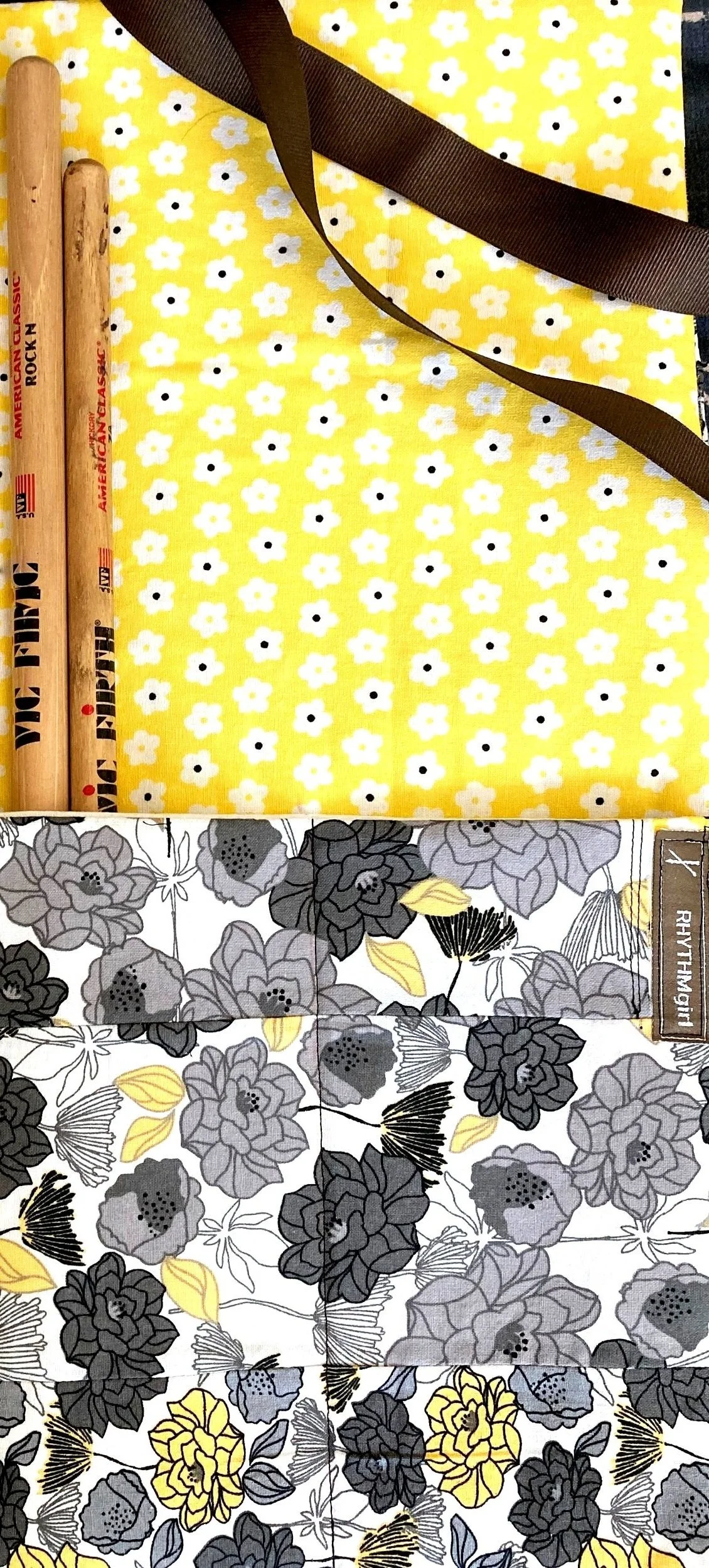Durable, cotton roll with 5 pockets, ribbon tie closure, useful for drumsticks, knitting needles, art brushes etc., machine washable